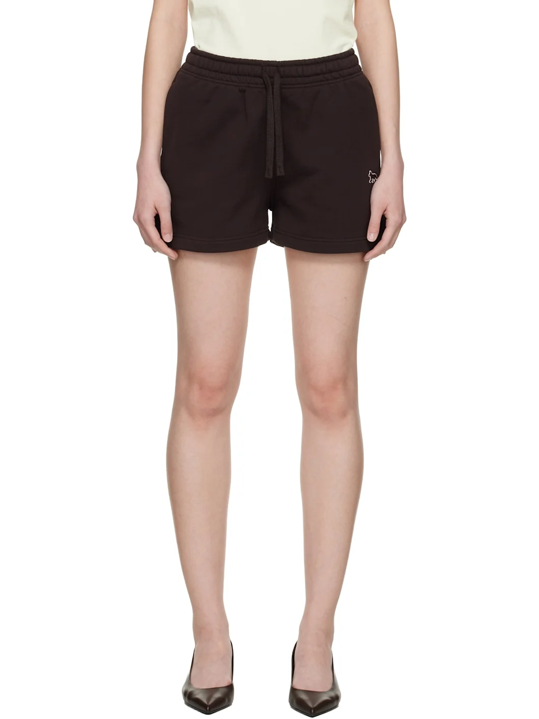 Organic cotton French terry shorts. · Drawstring at elasticized waistband · Two-pocket styling · Embroidered logo patch at front Supplier color: Ganache 100% organic cotton. Made in Portugal 261389F088002