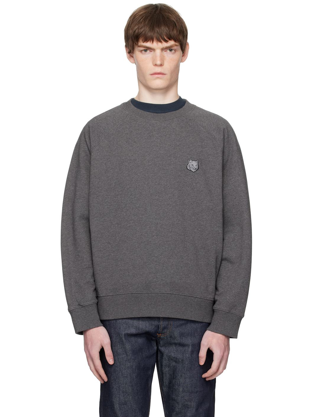 Gray Bold Fox Head Patch Oversize Sweatshirt