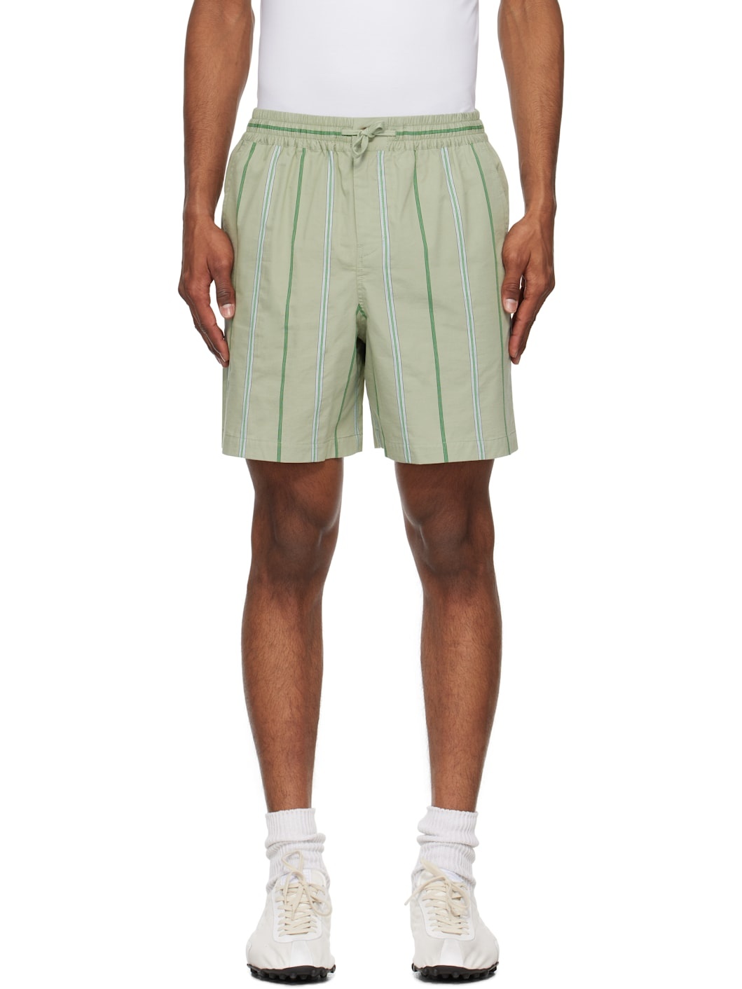 Cotton poplin shorts. Stripes throughout. · Drawstring at elasticized waistband · Four-pocket styling · Zip fly · Logo embroidered at back pocket · Logo-engraved hardware Supplier color: Vert-de-gris 85% cotton, 15% polyamide. Made in Portugal 251389M193007