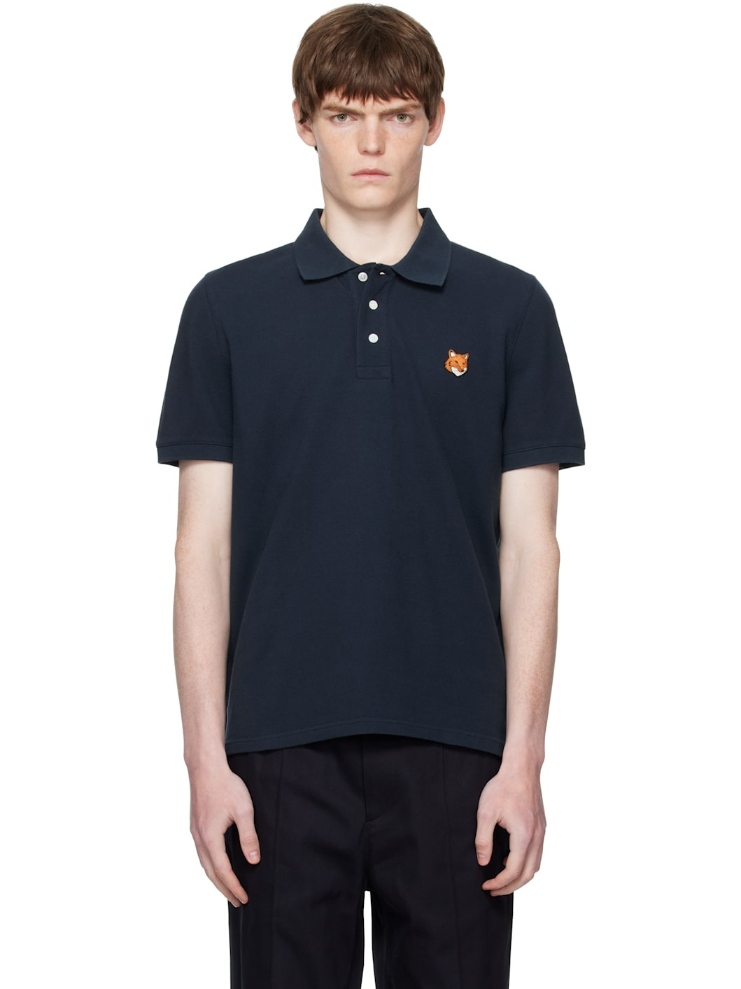 Cotton pique polo · Rib-knit spread collar · Two-button placket · Logo patch embroidered at chest · Tennis-tail hem Supplier color: Ink Blue 100% cotton. Made in Portugal 252389M212012