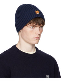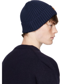 Rib-knit cotton beanie. Embroidered logo patch at rolled brim. Supplier color: Classic navy 100% cotton. Made in Morocco 252389M138002