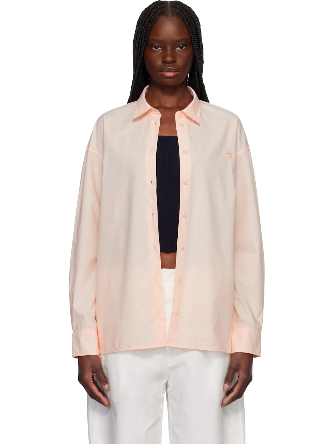 Cotton poplin shirt. · Spread collar · Button closure · Embroidered logo patch at chest · Droptail hem · Dropped shoulders · Two-button barrel cuffs · Logo-engraved mother-of-pearl hardware Supplier color: Pale pink 100% cotton. Made in Portugal 251389F109004
