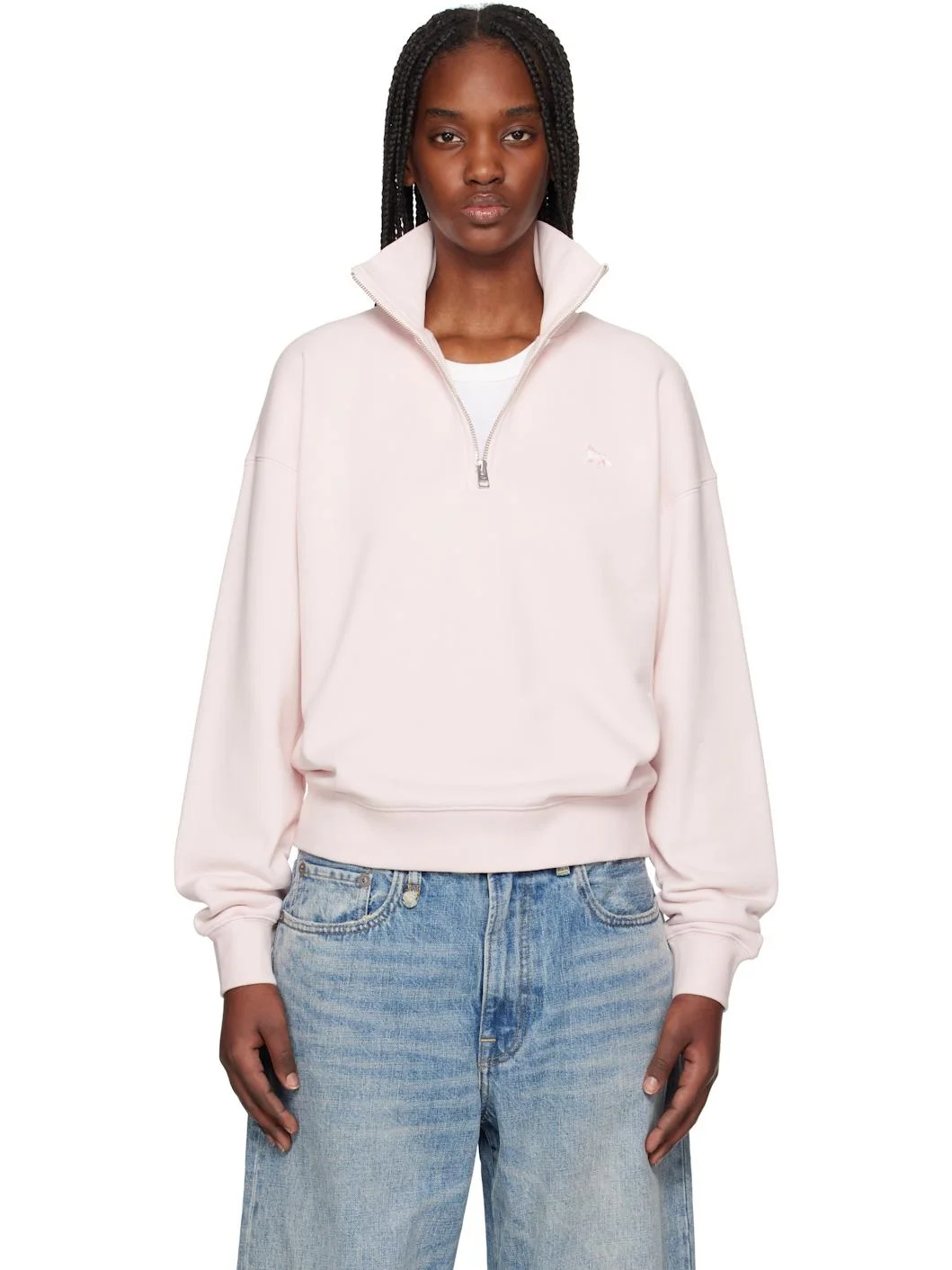 Pink Baby Fox Patch Half Zip Sweatshirt