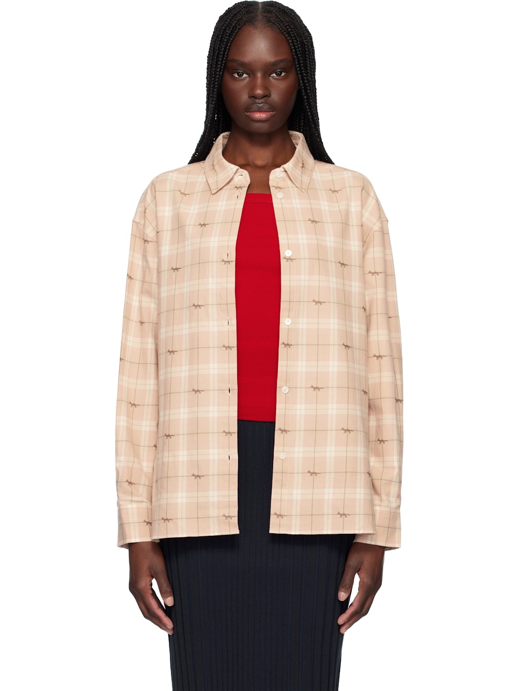 Cotton flannel overshirt. Check pattern and jacquard logo pattern throughout. · Spread collar · Button closure · Shirttail hem · Dropped shoulders · Buttoned barrel cuffs · Box pleat at back yoke Supplier color: Milk/pink check 100% cotton. Made in Portugal 251389F109002