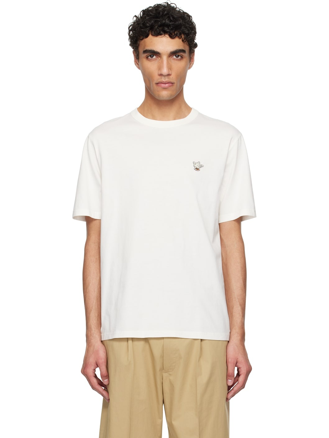 Cotton jersey T-shirt. · Rib-knit crewneck · Embroidered logo graphic patch at chest Part of the Cafe Kitsune collection. Supplier color: Tapioca 100% cotton. Made in Portugal 251389M213053