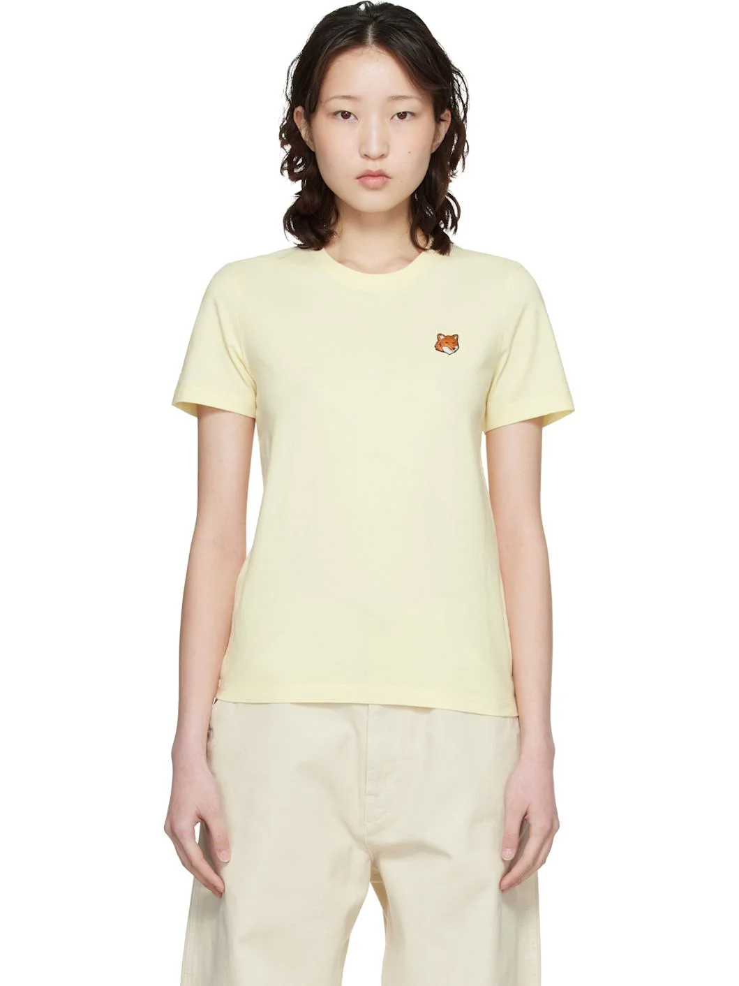 Organic cotton jersey T-shirt. · Rib-knit crewneck · Embroidered logo patch at chest Supplier color: Pastel yellow 100% organic cotton. Made in Portugal 261389F110026