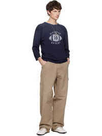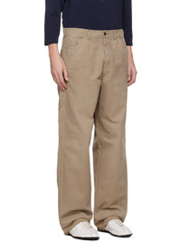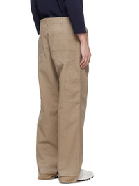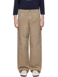 Cotton twill trousers. · Herringbone pattern throughout · Belt loops · Five-pocket styling · Zip fly · Frayed edge at cuffs · Hammer loop at outseam · Patch pockets at outseams · White stitching at back · Contrast stitching in brown Supplier color: Stone washed beige 100% cotton. Made in Italy 252168M186001