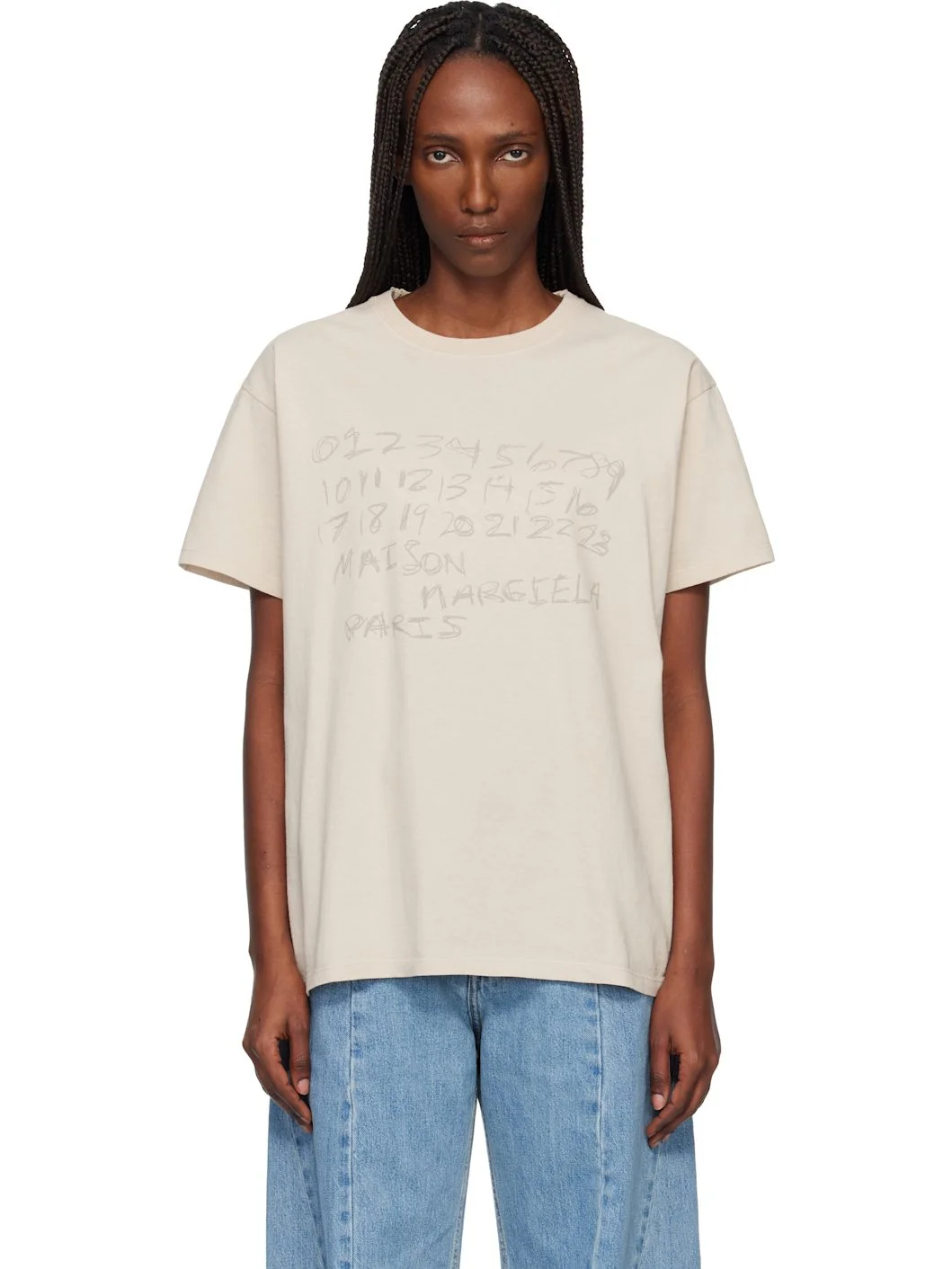 Garment-dyed cotton jersey T-shirt. · Rib-knit crewneck · Logo printed at chest · White stitching at back collar Supplier color: Sand 100% cotton. Made in Italy 261168F110003