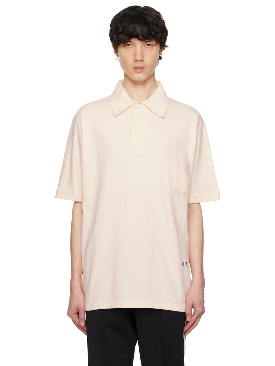 Cotton jersey polo. · Spread collar · Two-button placket · Patch pocket · Logo printed at front hem · Dropped shoulders · White stitching at back collar Supplier color: Ecru 100% cotton. Made in Italy 251168M212007