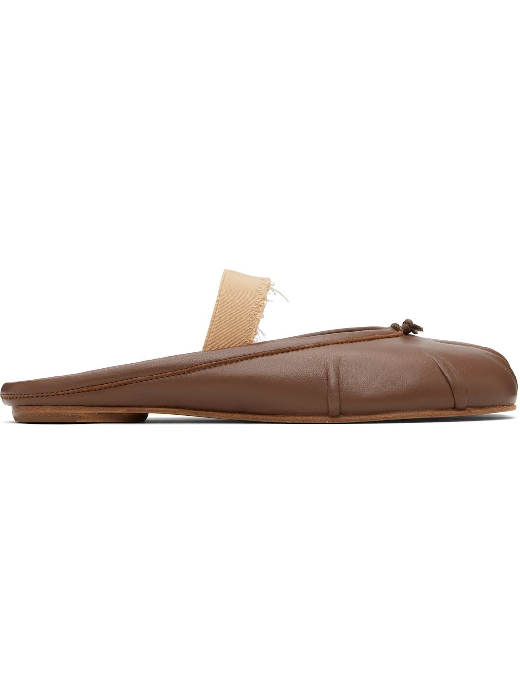 Grained sheepskin slip-on flats. · Square cleft toe · Knotted accent at vamp · Elasticized strap with raw edge · Handcrafted pleats at sides · Signature white stitching at inner sides · Logo stamp at padded calfskin footbed · Sheepskin lining · Calfskin sole with rubber injection Supplier color: Warm coffee/Nude Upper: sheepskin. Sole: calfskin, rubber. Made in Italy 252168F118002