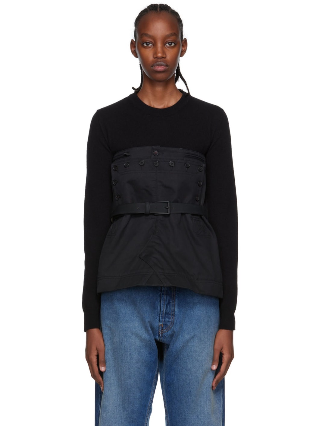Cotton gabardine camisole. · Welt pockets front and back · Button detailing at front · Lace-up closure at back · White stitching at back Supplier color: Black 100% cotton.