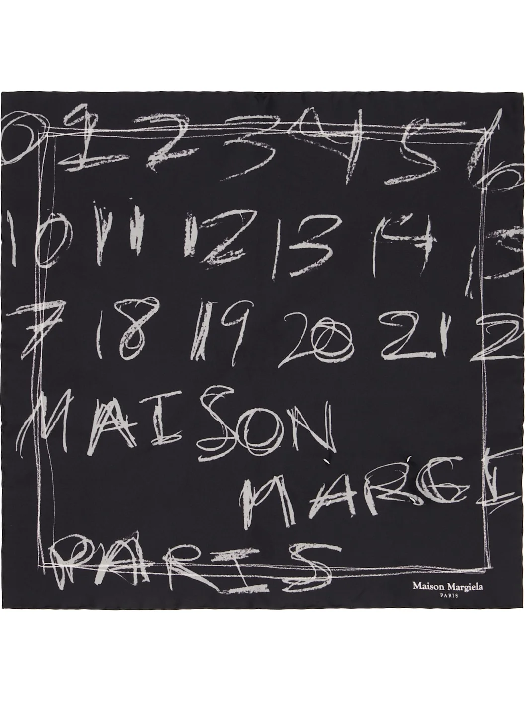 Square silk twill scarf. · Logo pattern printed throughout · White stitching and printed logo at face · L17" x W17" Supplier color: Black 100% silk. Made in Italy 261168F029000