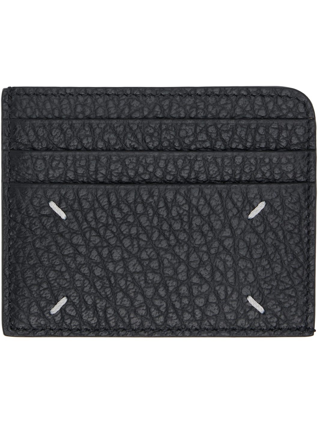 Pebble-grained calfskin card holder. · White stitching at face · Six card slots · Central note slot · Calfskin and canvas lining · H3.25" x W4" Supplier color: Black Calfskin. Made in Italy 252168M163003
