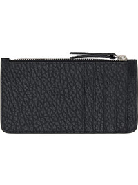 Grained calfskin card holder. · Stitching at face · Zip closure · Five card slots · Canvas lining · H2.75” x W5” Supplier color: Black Calfskin. Made in Italy 261168M164011