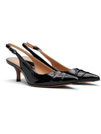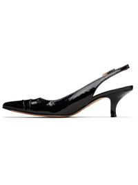 Patent sheepskin heels. · Pointed toe · White stitching at pin-buckle slingback strap · Buffed sheepskin lining · Covered kitten heel with rubber injection · Calfskin sole with rubber injection · Heel: H2" Supplier color: Black Upper: sheepskin. Sole: calfskin. Made in Italy 252168F122013