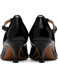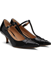 Patent sheepskin heels. · Pointed toe · Pin-buckle strap at vamp · White stitching at heel collar · Buffed lambskin lining · Covered kitten heel with rubber injection · Calfskin sole · Heel: H2" Supplier color: Black Upper: sheepskin. Sole: calfskin, rubber. Made in Italy 252168F122015
