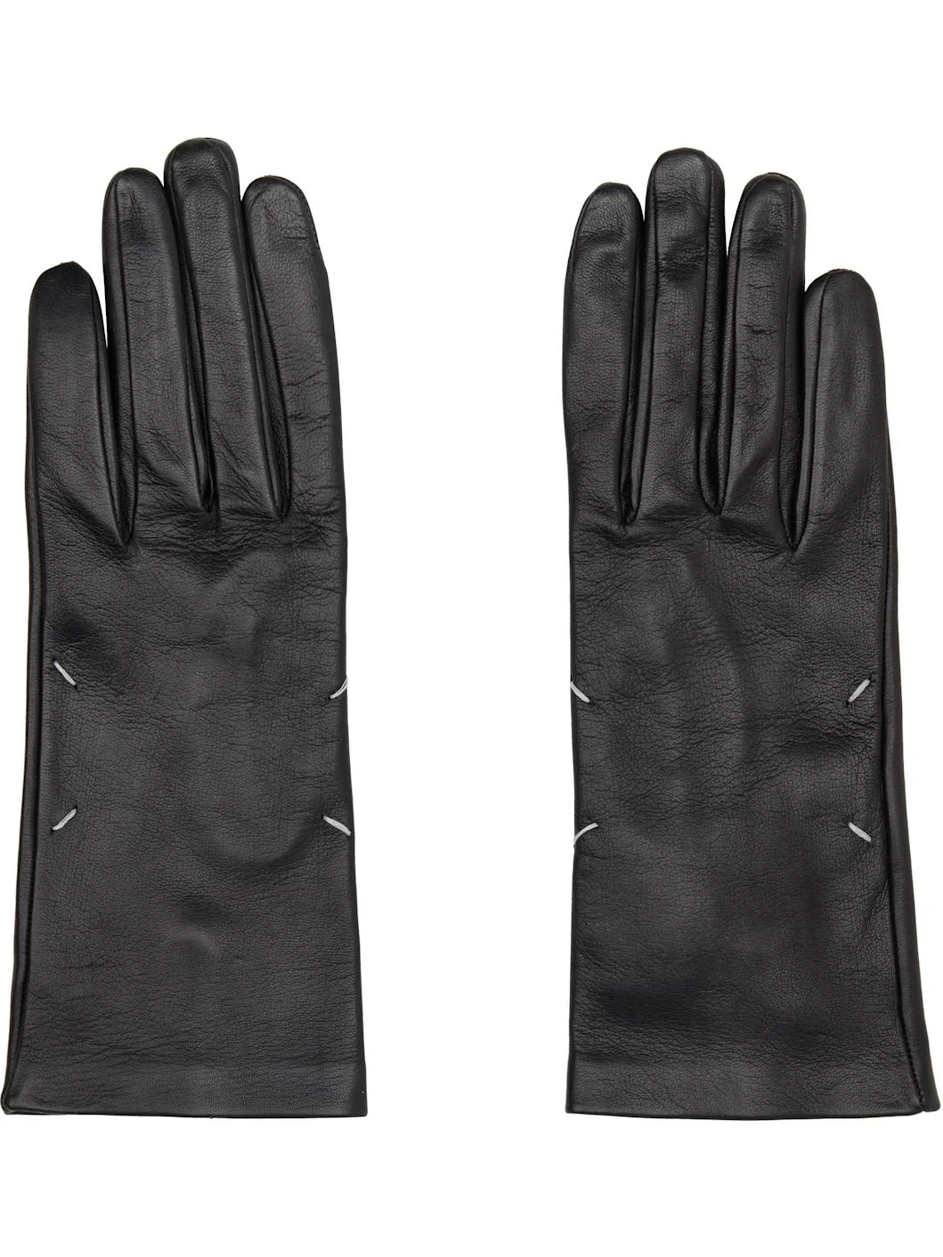 Pair of grained lambskin gloves. · Signature white stitching at top · Vent at cuffs · Suede lining Supplier color: Black Lambskin. Made in Italy 252168F012000