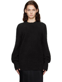 Oversized 5-gauge knit cotton-blend sweater. Pilling throughout. · Rib-knit crewneck, hem, and rolled cuffs · Saddle shoulders · White stitching at back collar Supplier color: Black 86% cotton, 14% polyamide. Made in Romania 242168F096013