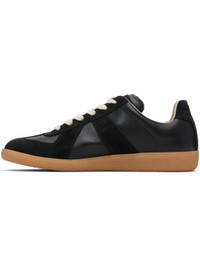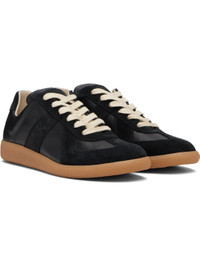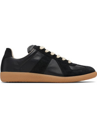 Low-top buffed nappa calfskin and calfskin suede sneakers. · Lace-up closure · Concealed elasticized gussets at vamp · Logo patch at padded tongue · Padded collar · White stitching at heel tab · Buffed calfskin and plain-woven lining · Textured rubber midsole · Treaded rubber sole Supplier color: Black Upper: calfskin. Sole: rubber. Made in Italy 252168M237027
