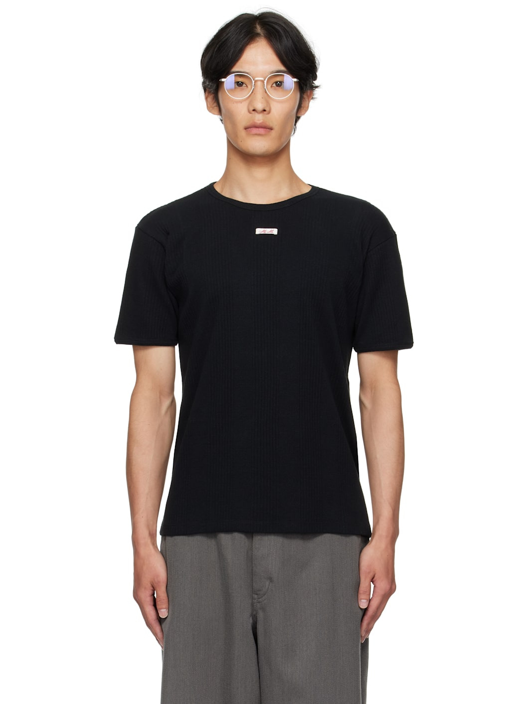 Cotton ribbed jersey T-shirt. · Crewneck · Logo patch at chest · White stitching at back collar Supplier color: Black 100% cotton. Made in Italy 252168M213016