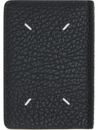 Pebble-grained calfskin bifold card holder. · White stitching at back face · Five card slots at interior · Two patch pockets · Canvas lining · H4.5" x W3" x D0.5" Supplier color: Black Calfskin. Made in Italy 252168F037000