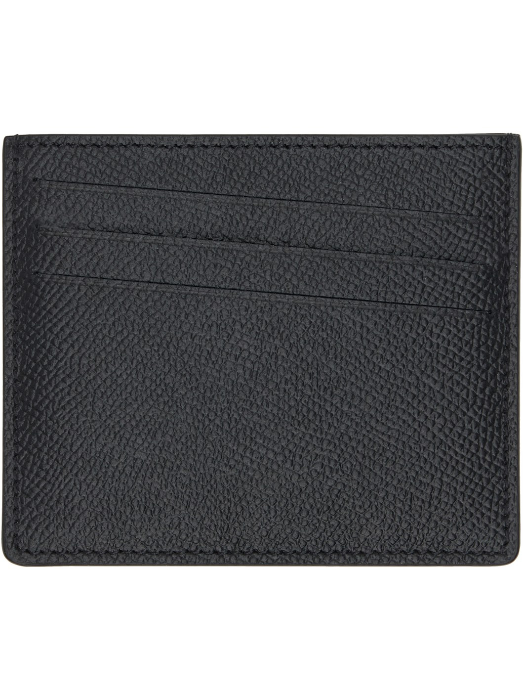 Saffiano and buffed calfskin card holder. · Five card slots · Central note slot · White stitching at back face · Canvas lining · H3.25" x W4" Supplier color: Black Calfskin. Made in Italy 252168F037002