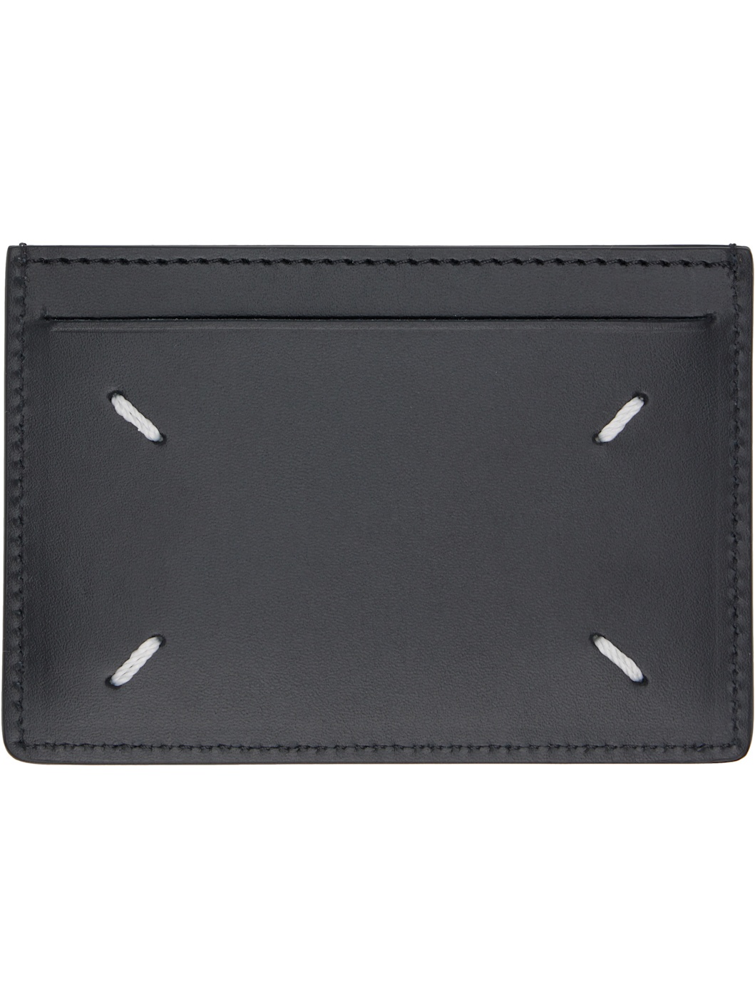 Pebble-grained and buffed calfskin card holder. · White stitching at face · Two card slots · Central note slot · Calfskin and canvas lining · H2.75" x W4" Supplier color: Black Calfskin. Made in Italy 252168M163009