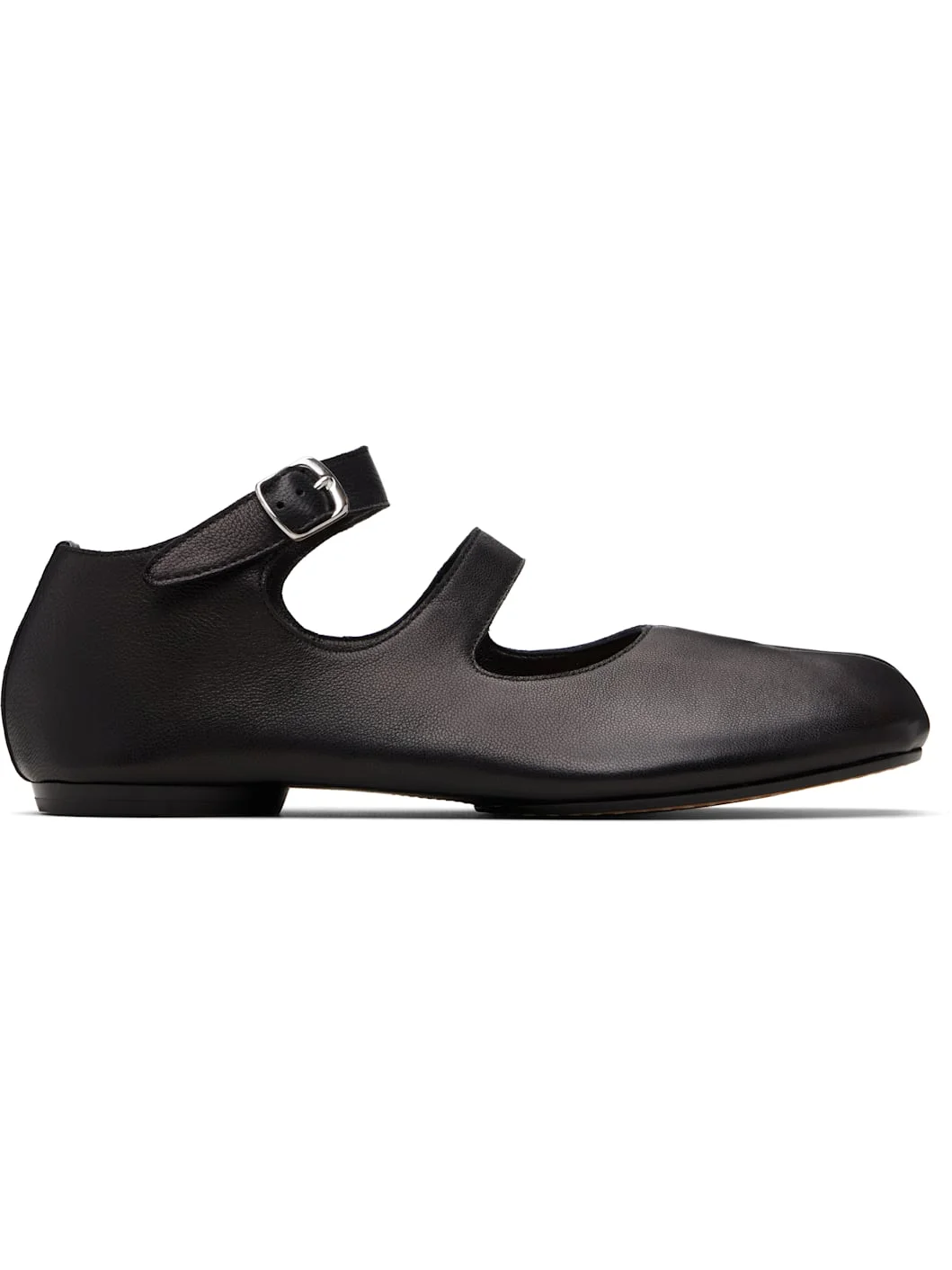 Buffed lambskin Mary Jane-style ballerina flats. · Square cleft toe · White stitching and cutouts at vamp · Pin-buckle fastening · Calfskin sole with rubber injection Supplier color: Black Upper: lambskin. Sole: calfskin, rubber. Made in Italy 261168F118007