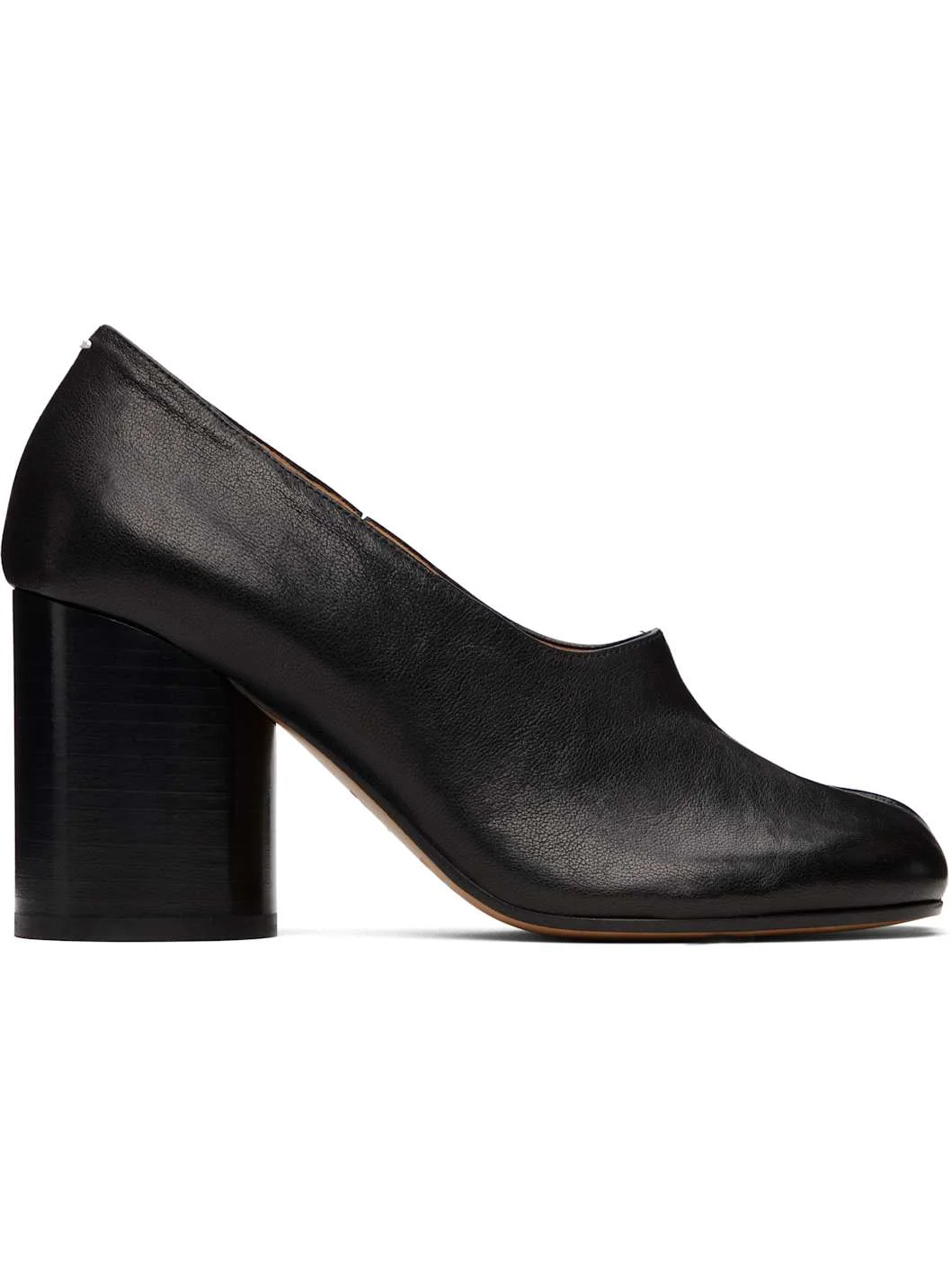 Grained nappa sheepskin heels. · Square cleft toe · Concealed elasticized gusset at inner side · White stitching at heel collar · Buffed calfskin lining · Cylindrical stacked calfskin heel with rubber injection · Calfskin sole · Heel: H3" Supplier color: Black Upper: sheepskin. Sole: calfskin. Made in Italy 261168F122017