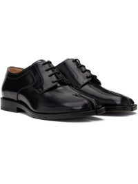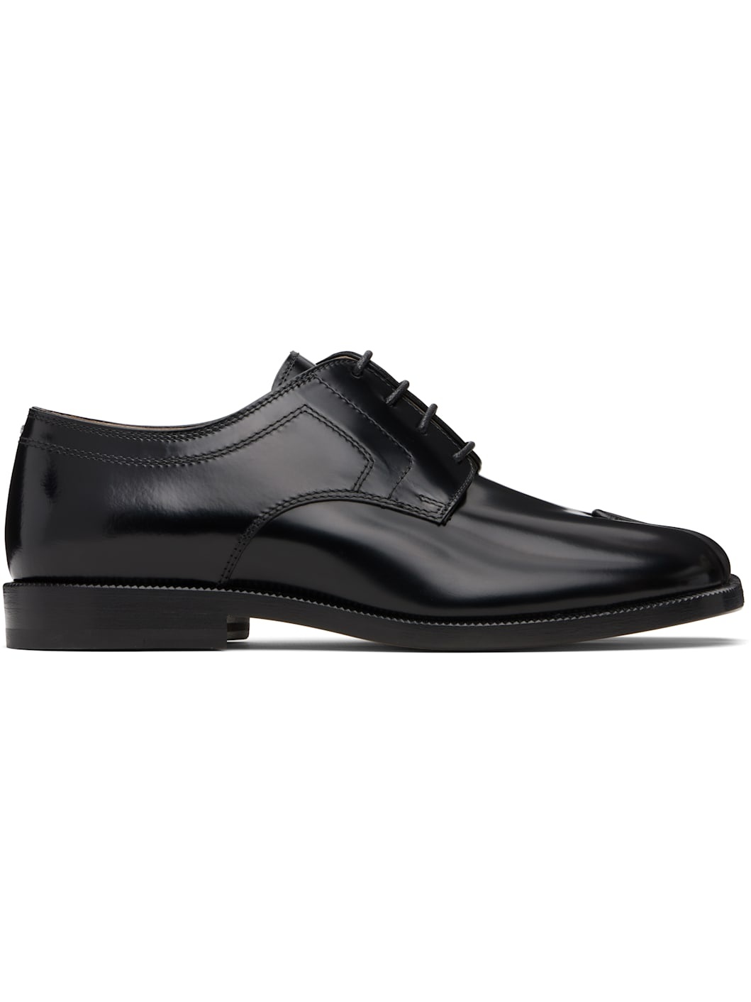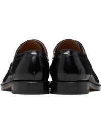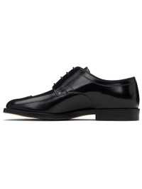 Polished calfskin derbys. · Square cleft toe · Lace-up closure · White stitching at heel · Buffed lambskin lining · Serrated edge at welt · Stacked leather heel with rubber injection · Calfskin sole Supplier color: Black Upper: calfskin. Sole: calfskin, rubber. Made in Italy 252168F120002