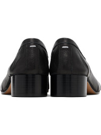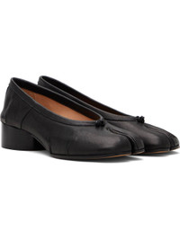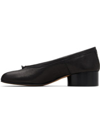 Grained nappa sheepskin heels. · Square cleft toe · Darts at outer side · White stitching at heel collar · Buffed calfskin lining · Stacked leather heel with rubber injection · Calfskin sole · Heel: H1" Supplier color: Black Upper: sheepskin. Sole: calfskin, rubber. Made in Italy 261168F122005