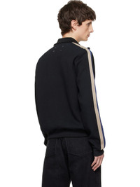 Cotton-blend jersey sweatshirt. · Rib-knit spread collar, hem, and cuffs · Half-zip closure · Zip pocket at chest · Striped rib-knit trim at sleeves · White stitching at back · Mesh lining Supplier color: Black Body: 58% cotton, 42% polyester. Lining: 100% polyamide. Made in Italy 252168M202009