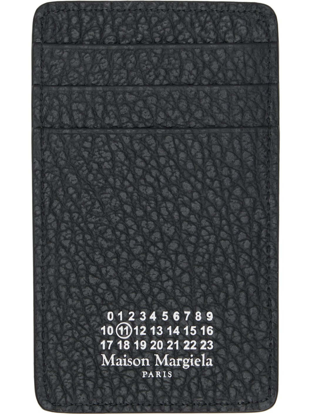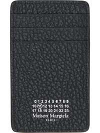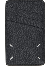 Pebble-grained calfskin card holder. · Logo printed at face · Six card slots · White stitching at back face · Canvas lining · H4.75" x W2.75" Supplier color: Black Calfskin. Made in Italy 252168M163006