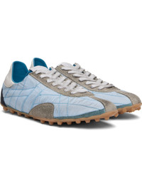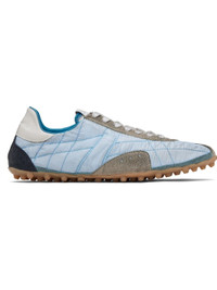 Low-top quilted taffeta and calfskin suede sneakers. · Lace-up closure · Logo patch at tongue · White stitching at heel tab · Twill lining · Treaded rubber sole Supplier color: Blue/White Upper: calfskin, textile. Sole: rubber. Made in Italy 252168M237021