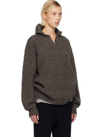 Rib-knit virgin wool- and cotton-blend jacket. · Stand collar · Half-zip closure · Dropped shoulders · White stitching at back collar Supplier color: Brown 51% virgin wool, 47% cotton, 2% other fibres. Made in Italy 252168F097001