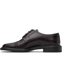 Polished calfskin derbys. · Perforated detailing and serrated edges throughout · Square cleft toe · Lace-up closure · White stitching at heel collar · Grained sheepskin lining · Stacked calfskin heel with rubber injection · Calfskin sole Supplier color: Brown Calfskin. Made in Italy 261168M225004