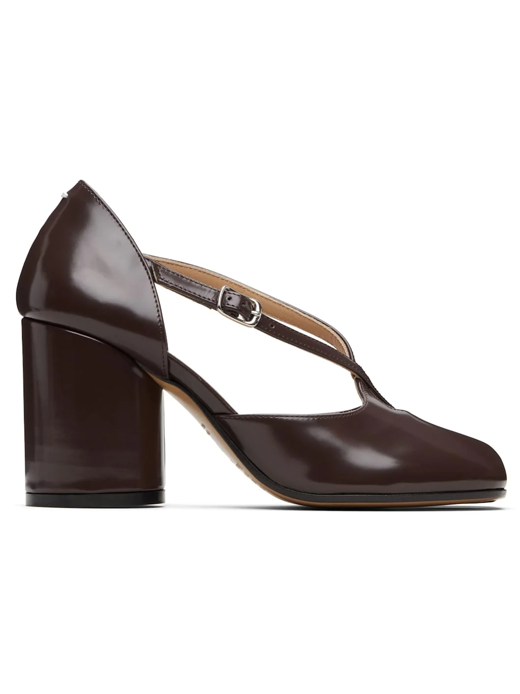 Polished calfskin heeled sandals. · Square cleft toe · Crisscrossing straps at vamp · Pin-buckle fastening at outer side · White stitching at heel collar · Buffed lambskin lining · Covered block heel with rubber injection · Calfskin sole · Heel: H3" Supplier color: Brown Calfskin. Made in Italy 252168F125002