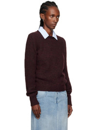 Knit virgin wool-blend sweater. · Rib-knit crewneck, hem, and cuffs · White stitching at back collar Supplier color: Burgundy 90% virgin wool, 10% polyamide. Made in Romania 252168F096000