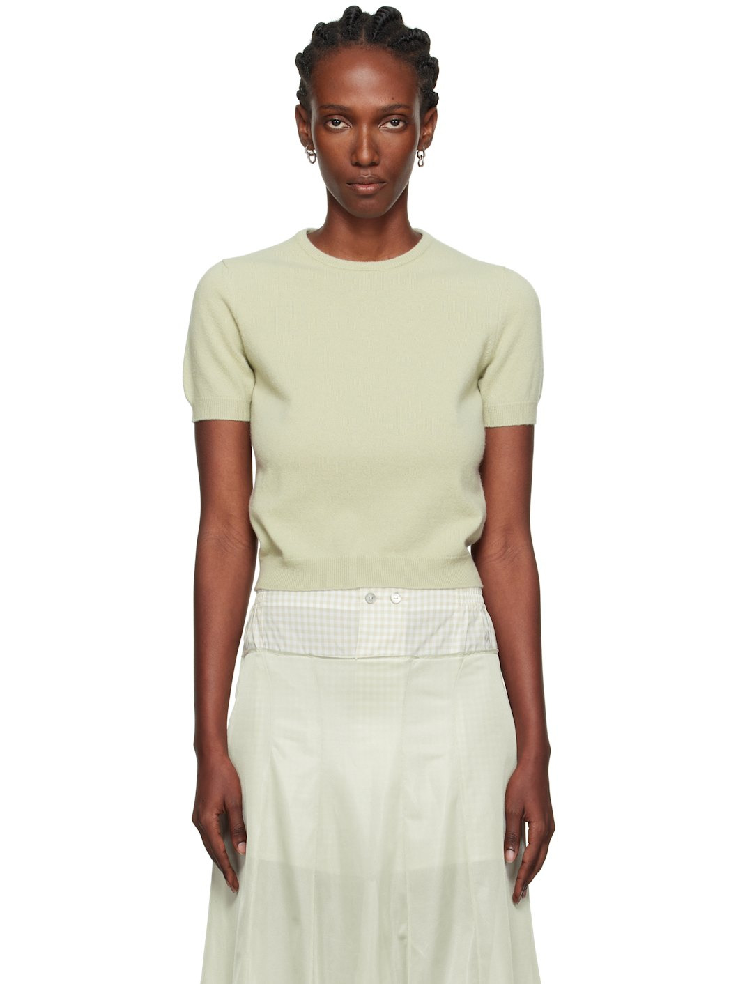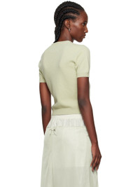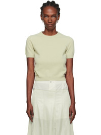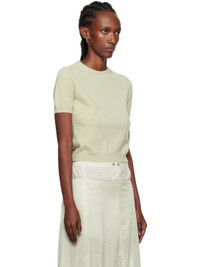 Knit virgin wool sweater. · Rib-knit crewneck, hem, and cuffs · White stitching at back collar Supplier color: Pale green 100% virgin wool. Made in Italy 252168F096001