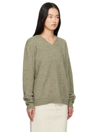 Knit wool- and cotton-blend sweater. Pilling throughout. · Rib-knit V-neck, hem, and cuffs · Dropped shoulders · White stitching at back collar Supplier color: Sage green 55% wool, 45% cotton. Made in Italy 251168F100009
