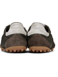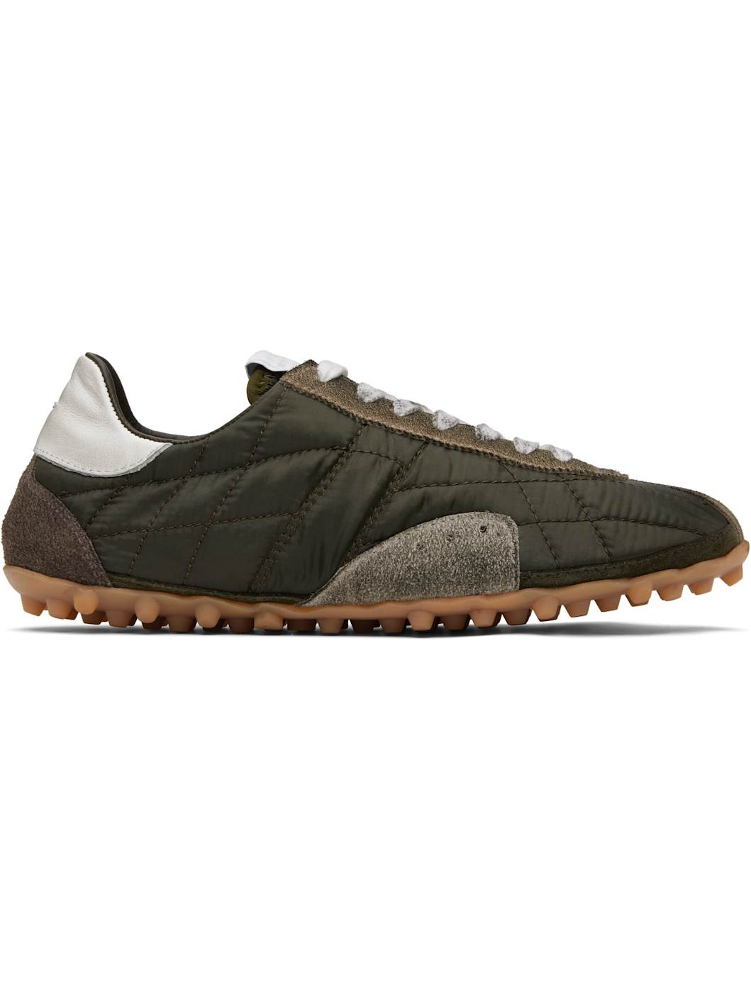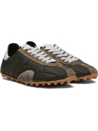 Low-top quilted taffeta and calfskin suede sneakers. · Lace-up closure · Logo patch at tongue · White stitching at heel tab · Twill lining · Treaded rubber sole Supplier color: Dark green/White Upper: calfskin, textile. Sole: rubber. Made in Italy 252168M237019