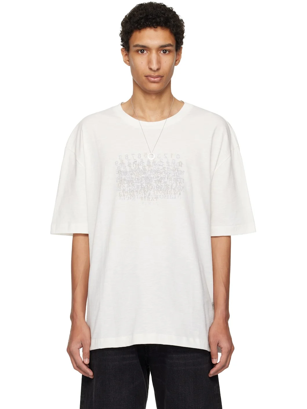 Cotton jersey T-shirt. · Rib-knit crewneck · Printed and embroidered logo at front · White stitching at back collar Supplier color: Off white 100% cotton. Made in Italy 261168M213000