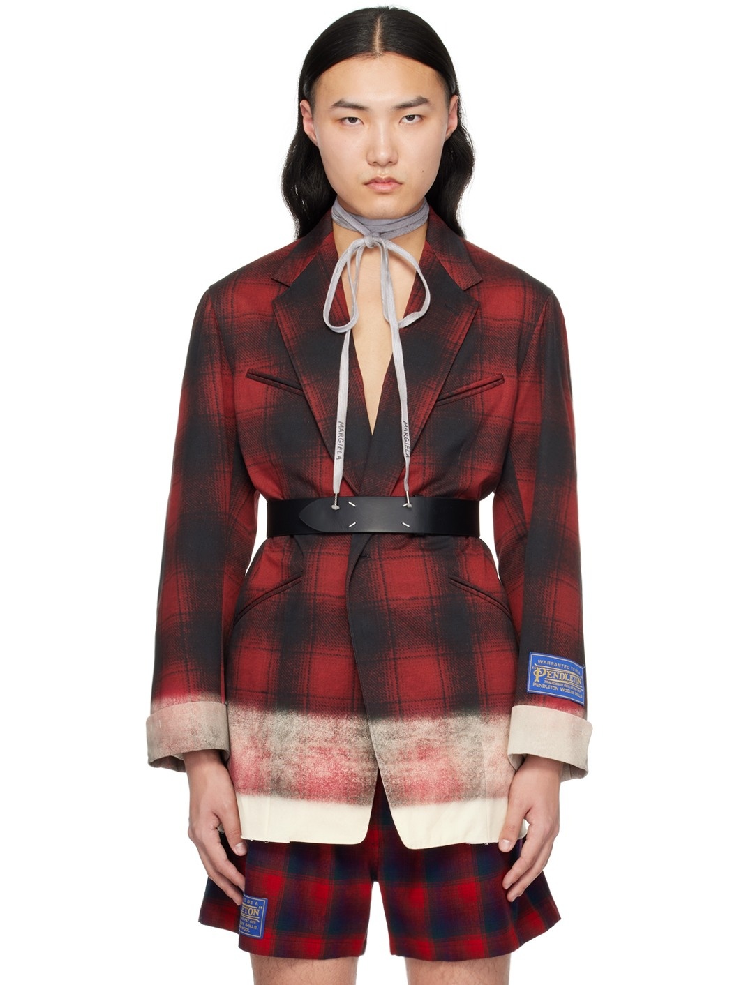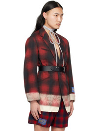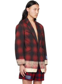 Pendleton™ cotton twill blazer. Check pattern and fading throughout. · Notched lapel · Single-button closure · Welt pockets · Raw edge at hem · Logo patch at sleeve · Rolled cuffs · White stitching at back collar · Central vent at back hem · Welt pockets and zip pocket at interior · Partial twill lining Supplier color: Black/Red