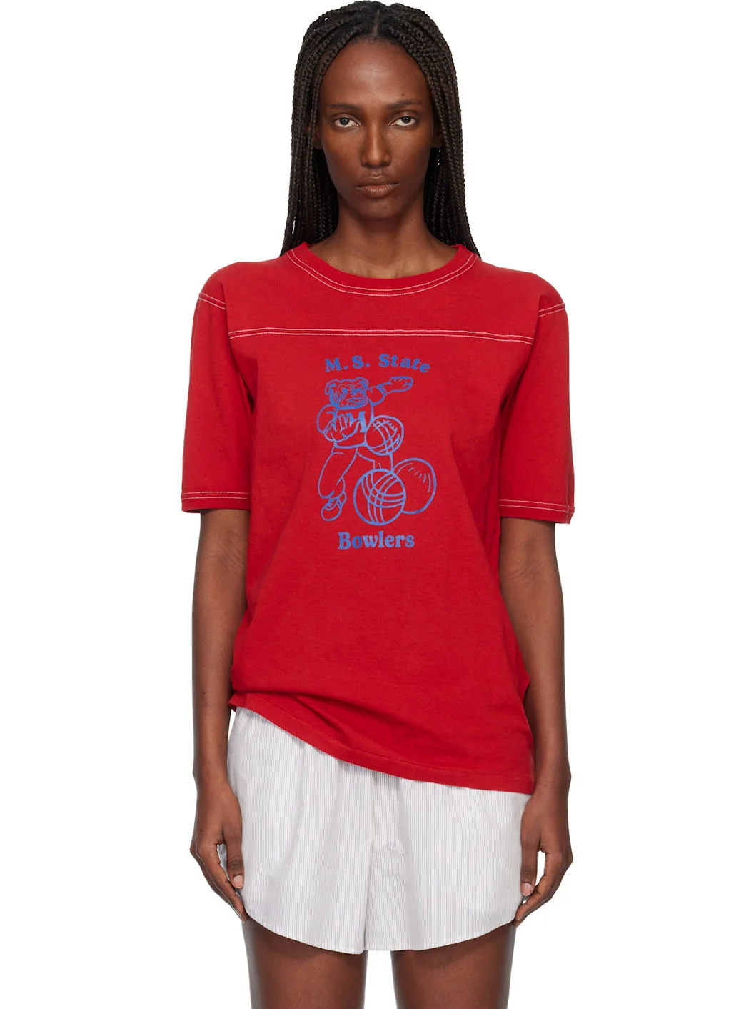 Cotton jersey T-shirt. · Paneled construction · Rib-knit crewneck · Graphic and text printed at chest · White stitching at back collar · Contrast stitching in white Supplier color: Red 100% cotton. Made in Italy 261168F110005