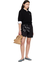 Calfskin suede top handle bag. · Rolled carry handles with detachable keyring · Adjustable and detachable crossbody strap · White stitching at back face · Mismatched bumper studs at base · Zip closure with key-shaped pull tab · Stowaway panel with zip closure · Patch and zip pockets at interior · Twill lining · H10" x W10" x D5" Supplier color: Camel Calfskin. Made in Italy 261168F046009