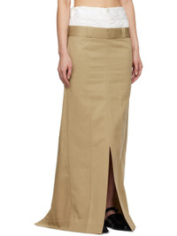 Polyester- and cotton-blend twill maxi skirt. · Pleats and grosgrain trim at extended waistband · Belt loops · Four-pocket styling · Creases at front and back · White stitching at hem · Central vent at front and back hem · Self-tie grosgrain drawstring at back waistband · Patch at back pocket · White stitching at back waist Supplier color: Camel Body: 60% polyester, 40% cotton. Lining 1: 100% cotton. Lining 2: 100% polyester. Made in Italy 251168F093003