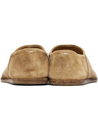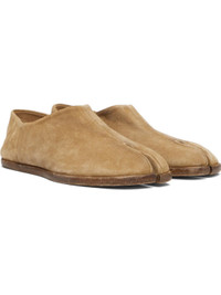 Tabi Split-Toe Collapsible-Heel Suede Loafers Beige