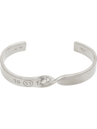 Open cuff bracelet in antiqued silver-tone brass. Twisted detailing and engraved logo at face. Supplier color: Palladio semi polished Brass. Made in Italy 252168M142006