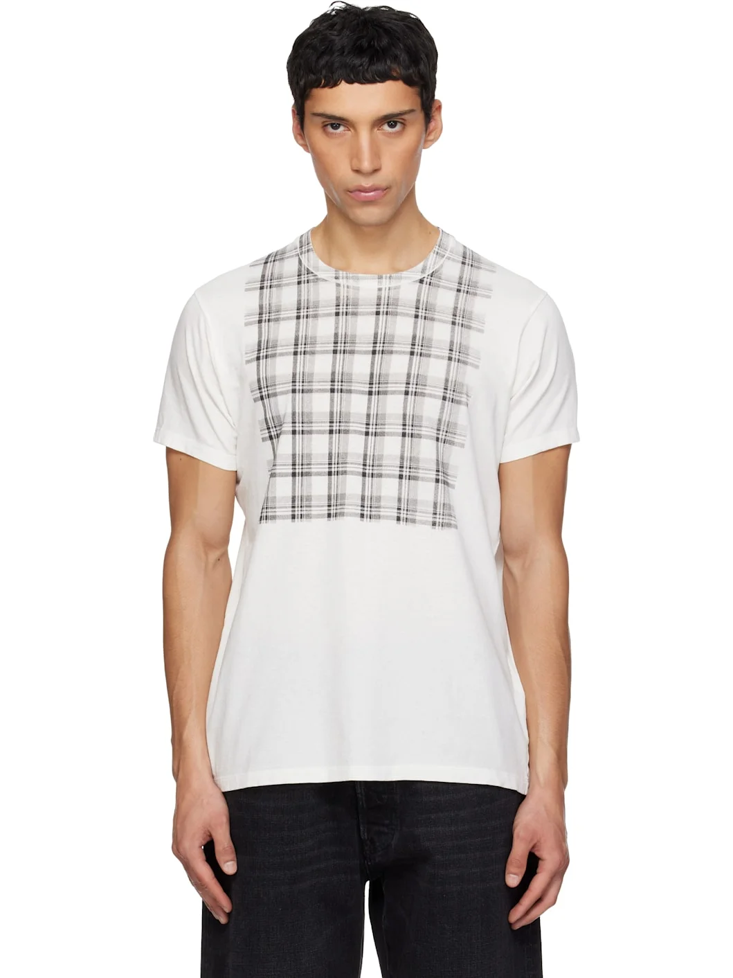 White Check Panel Cotton T-shirt