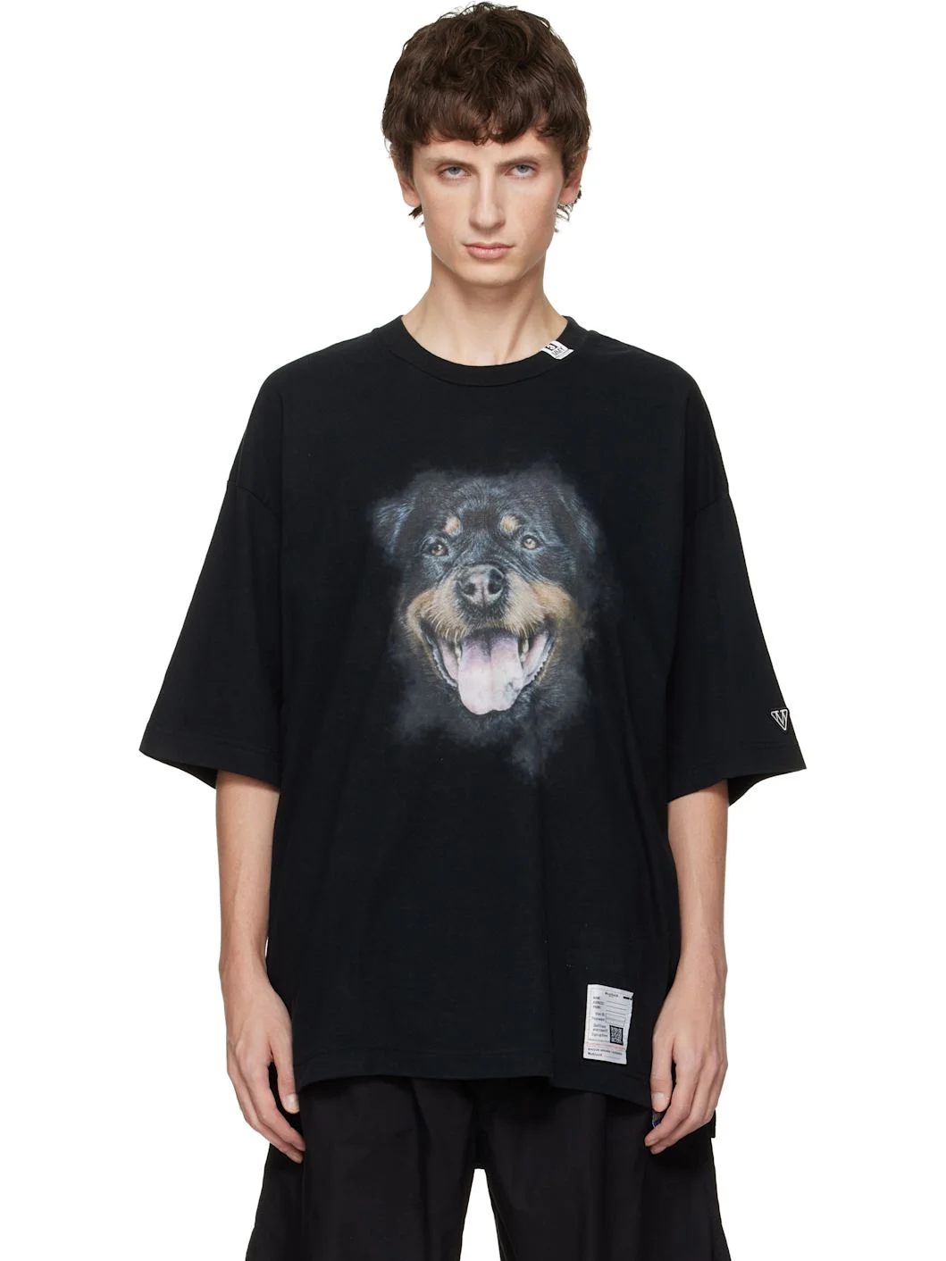 Cotton jersey T-shirt. · Logo patch at collar and hem · Rib-knit crewneck · Graphic printed at front · Dropped shoulders · Embroidered logo patch at sleeve · Text printed at back Supplier color: Black 100% cotton. Made in Japan 252551M213010